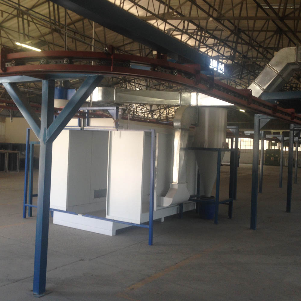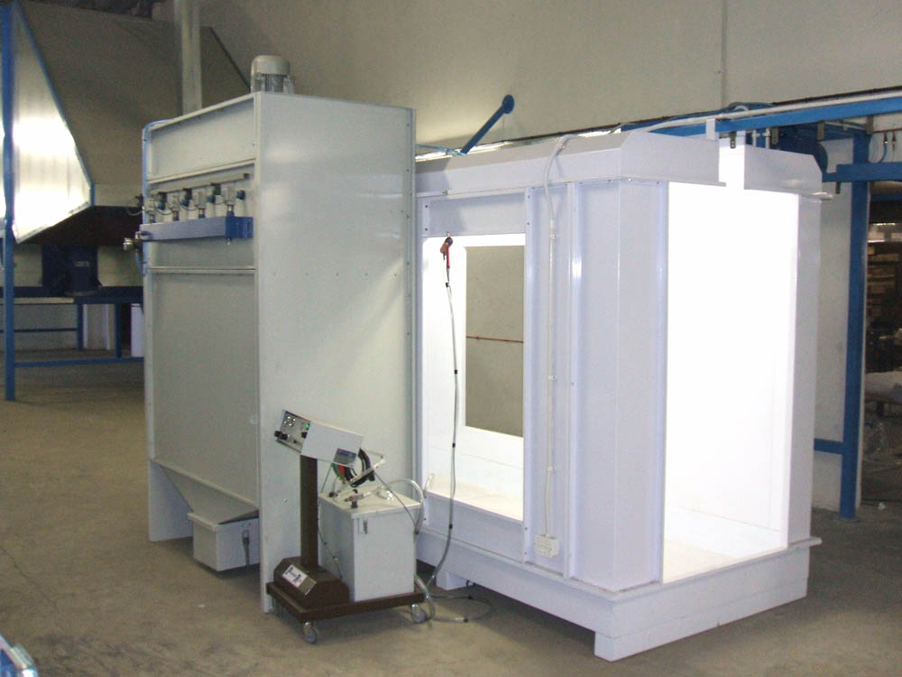 - These spray booths are used for smaller products that are placed into the spray booth and manually moved into an oven.