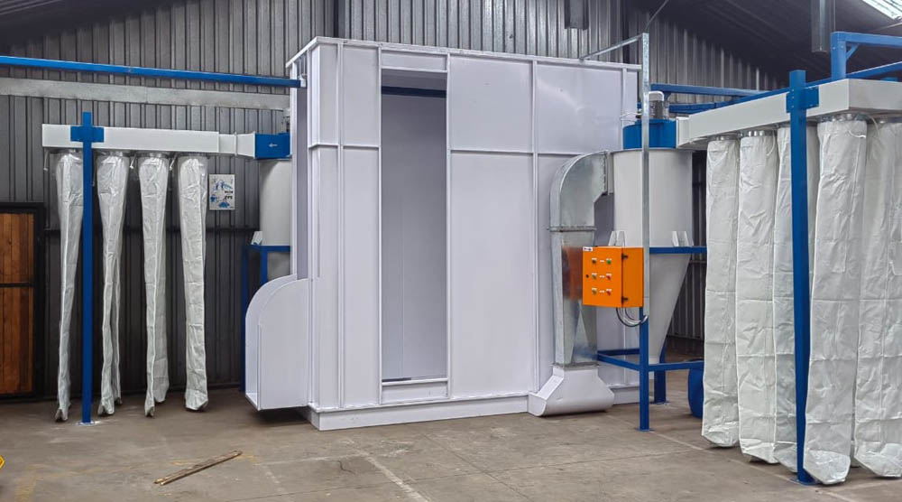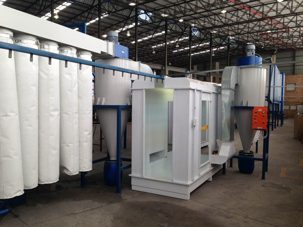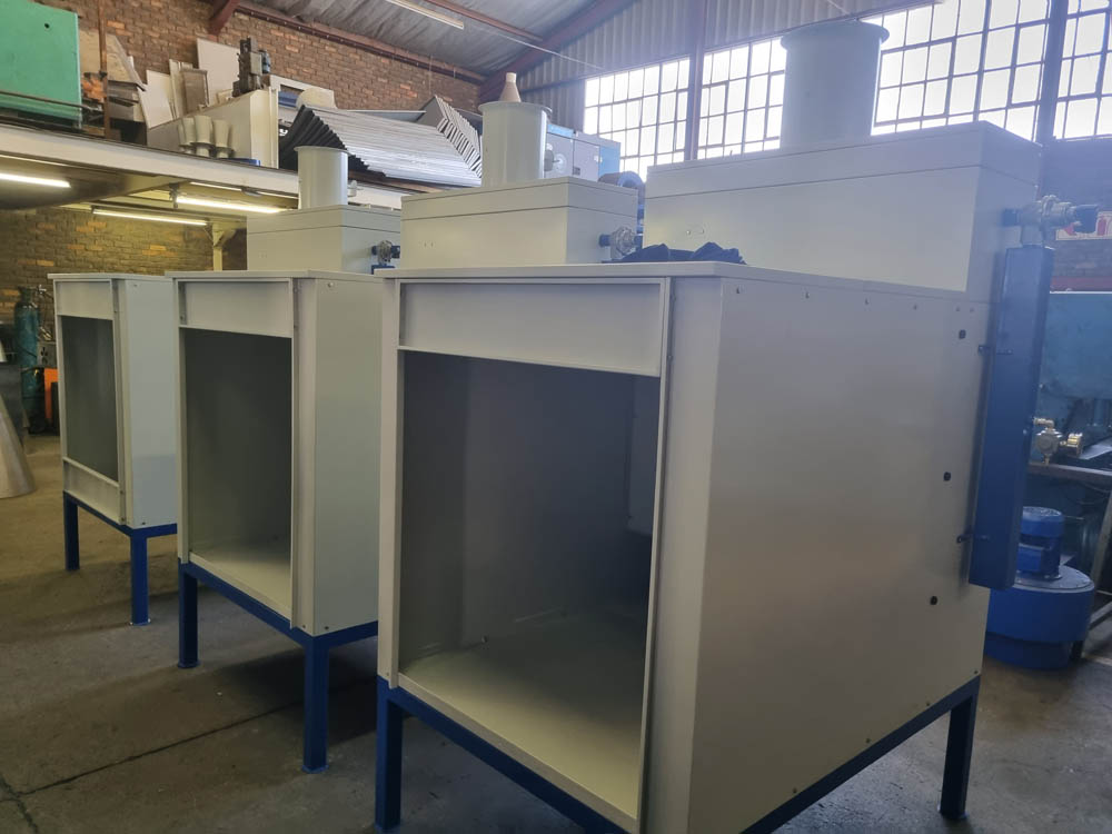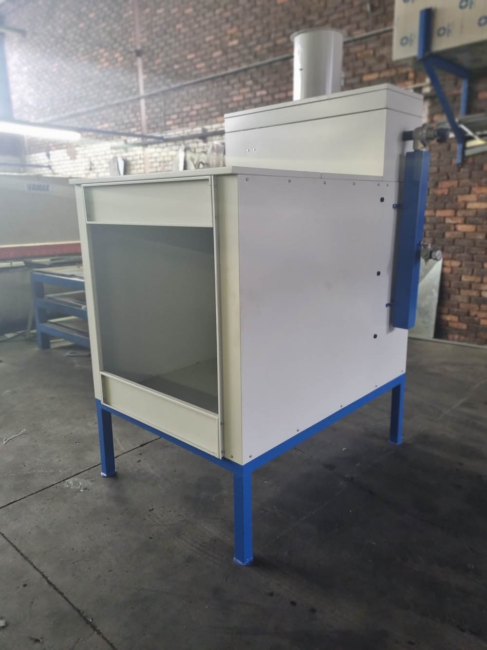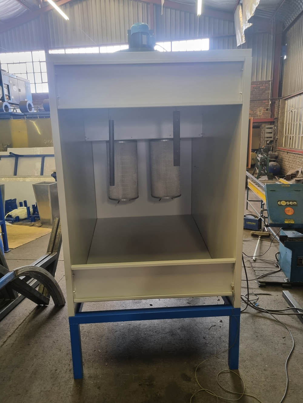 We offer 3 different types of spray booths depending on your needs. Spray booth are an essential part of recovering powder from over spray ensuring you get as much bang for your buck as possible. Working with powder can get very messy very quickly the use of a well designed and built spray booth ensures as little powder drift as possible helping the rest of your factory remain as clean as possible.