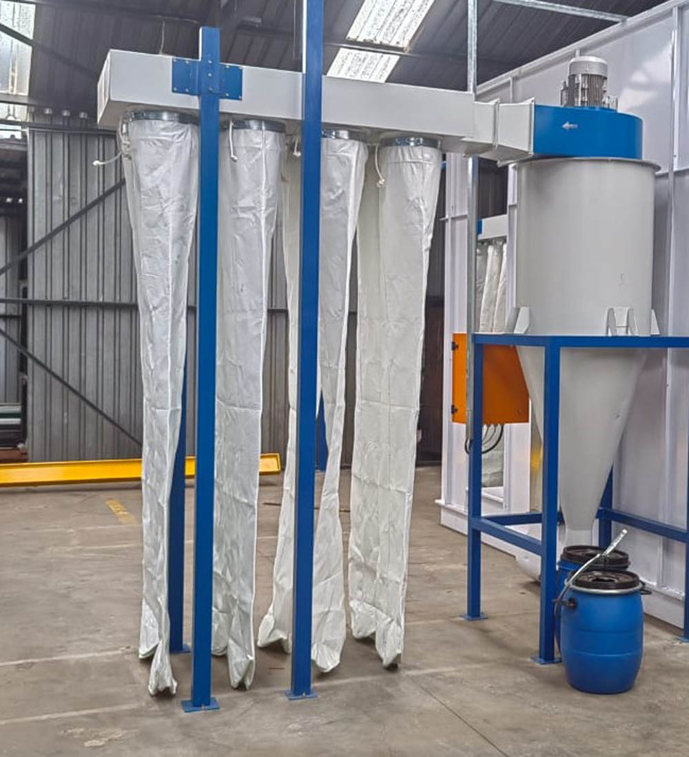 - The cyclone provides a negative pressure in the spray booth allowing for two square meter of opening per cyclone.